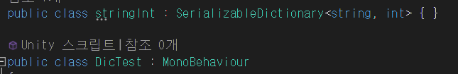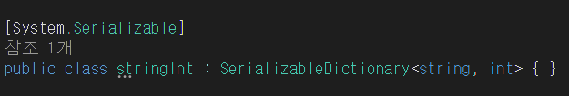 SerializableDictionary를 상속받아 주었다. 상속받는 <,> 안에는 내가 딕셔너리로 만들고 싶은