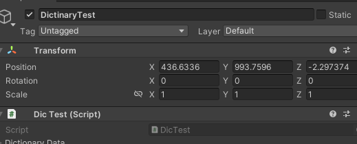 Dictest 스크립트를 넣어줄 오브젝트를 하나 만들어주고 오브젝트안에 스크립트를 넣어준다.