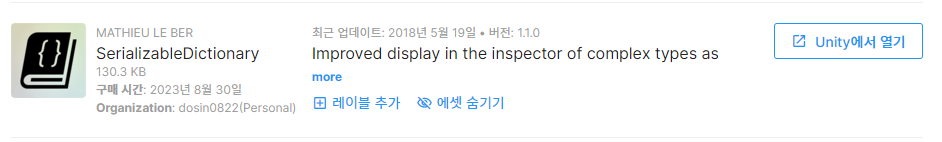 SerializableDictionary 에셋을 다운받았다면 Dictionary의 직렬화 뿐만 아니라
