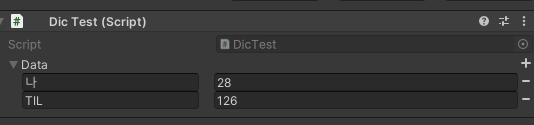 딕셔너리 옆에 +버튼으로 인스펙터에서 딕셔너리 안에 Data의 추가가 가능해지고