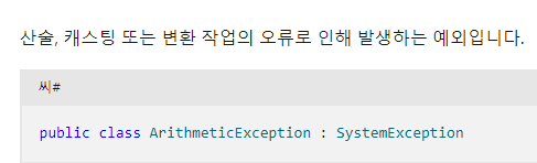 DivideByZeroException 클래스는 ArithmeticException 클래스를 상속받고 있다.
