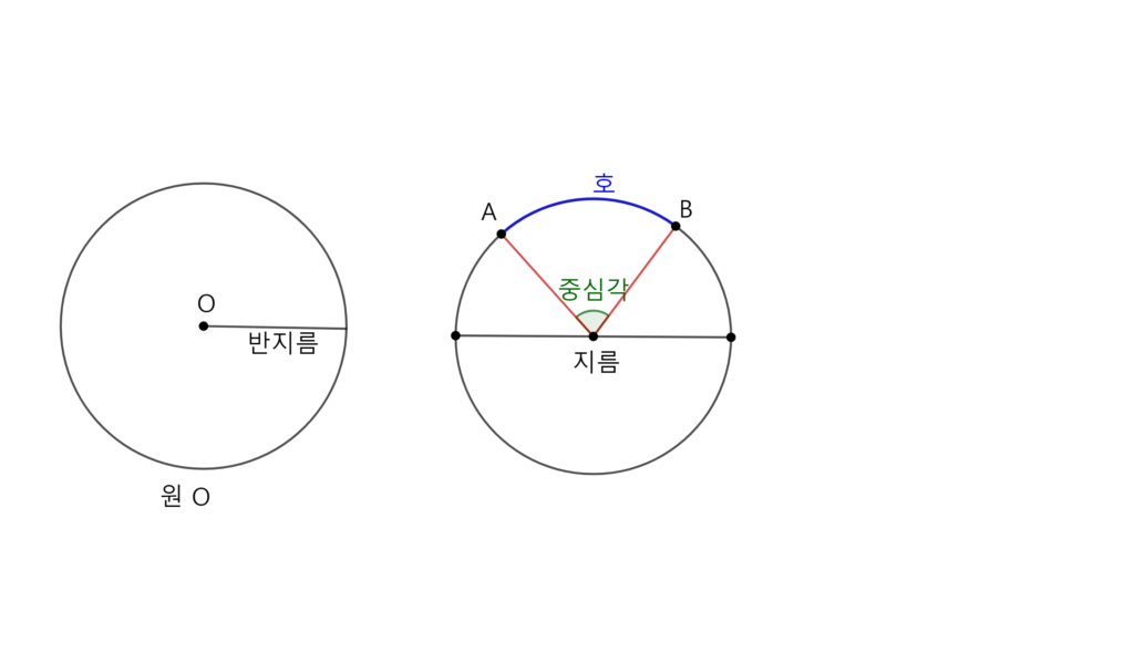 원의 호는 원의 일부분인데 원 위의 두 점을 양 끝으로 하는 원의 일부를 말한다.