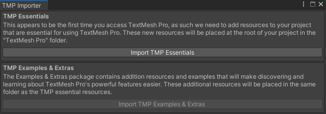 TextMeshPro 줄여서 TMP Impoter라고 창이하나 똿 나오게 된다