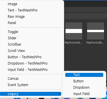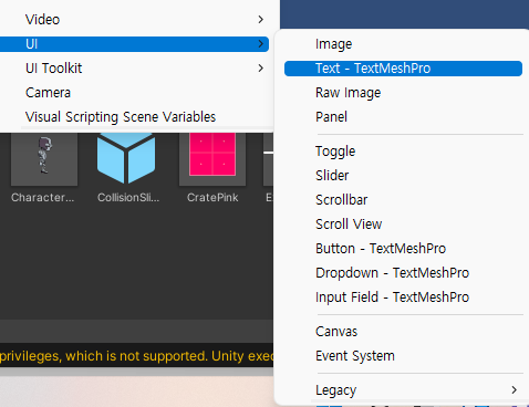 기존의 Text는 Legacy에 꽁꽁 숨겨놓으면서까지 TextMeshPro를 강력하게 밀고있는 모습니다