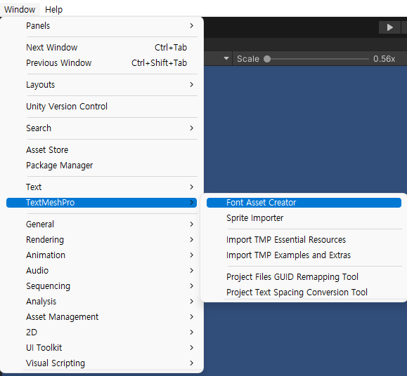 window - Text Meshpro - Font Asset Creator를 클릭하면