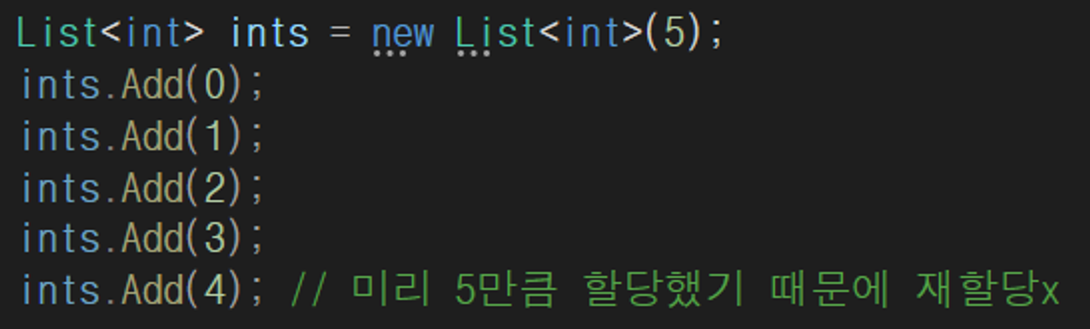 이렇게 미리 사이즈가 5인 리스트로 만들어주면 재할당하지 않고 크기가 5인 List가 만들어진다
