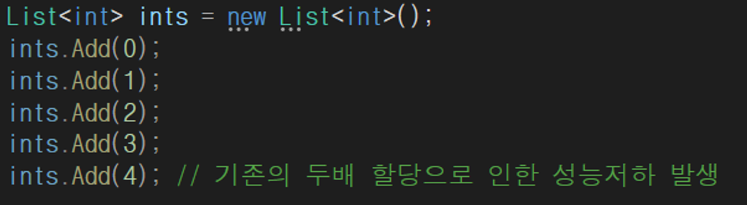 이렇게 사이즈를 딱 정해주지 않고 만들어진 리스트는 해당 크기가 초과된다면 자동으로 기본 크기의 두배로 할당한다. 리스트의 장점이자 단점인데