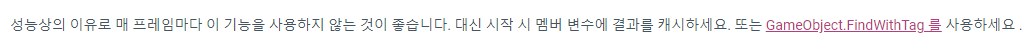 Find 나 FindwitTag 그리고 GetComponent의 반복적인 사용은