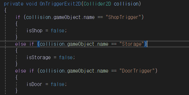 물론 상점 그리고 다른 씬으로 이동하는 문에대한 내용까지 다 이렇게 처리를 하고 싶었다.