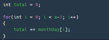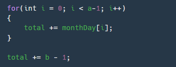 반복문에서 4월까지 다 더해주고 난 다음에 total에 b - 1만큼을 더해주자