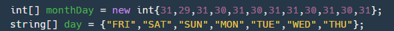 그다음 요일도 만들어주자 아 FRI가 첫번째 인덱스인 이유는 바로 2016년의 1월1일이 금요일이기 때문이다.