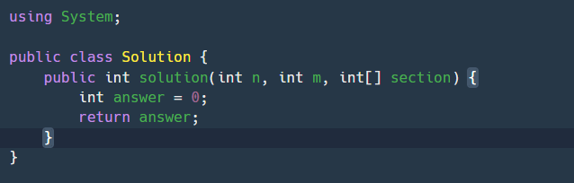 answer을 +1 올려주고? paint의 위치를 section[i] + m - 1 만큼 옮겨주자
