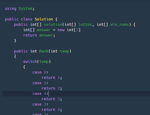 알고리즘을 풀기전에 이번에는 Sloution 클래스에 로또 등수를 알려줄 메서드 하나를 먼저 추가해보자