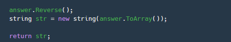 마지막으로 string str을 만들어주고 그곳엔 answer.ToArray()를 통해 string으로 바뀐 answer를 대입해주고